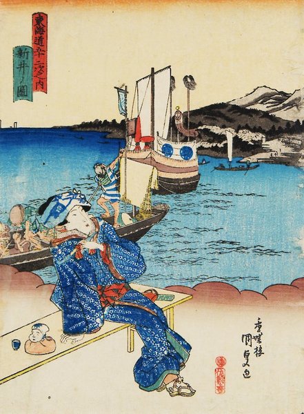 東海道五十三次之内(美人東海道) 新井ノ図