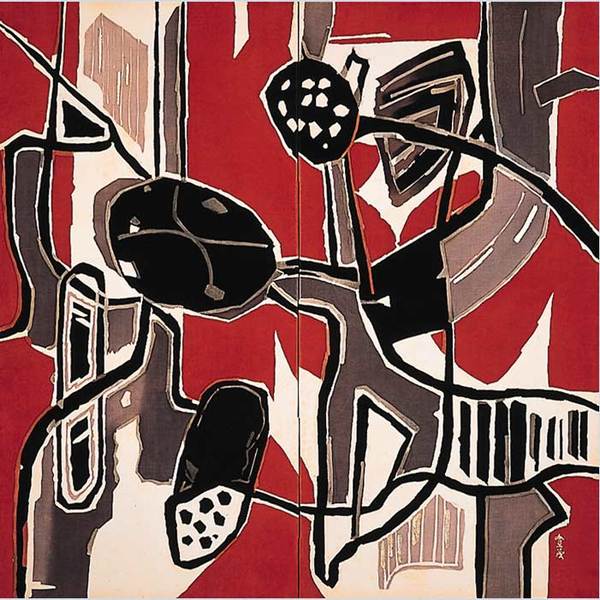 Summer day.Two-fold screen.Dyeing
