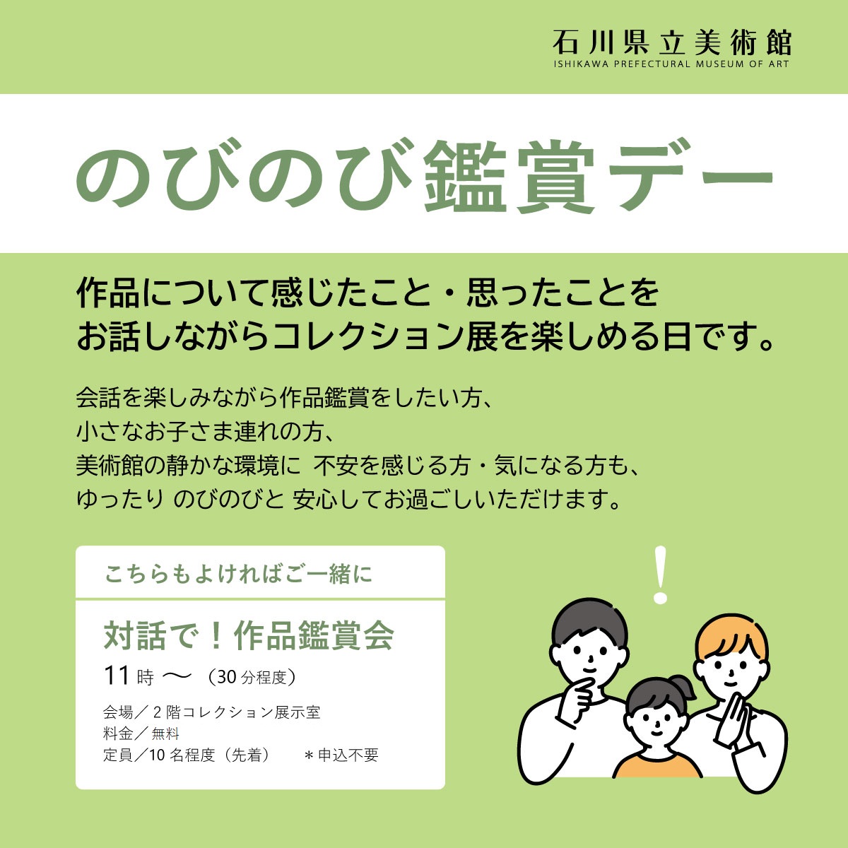 作品について感じたこと、思ったことを、お話しながらコレクション展を楽しめる日です。